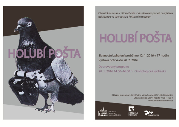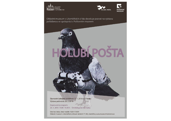 Výstava Holubí pošta, kterou připravilo Poštovní muzeum v loňském roce, začala své putování v Oblastním muzeu v Litoměřicích. Tam si ji návštěvníci mohou prohlédnout od 12. 1. až do 28. 2. 2016, připraven je také doprovodný program.