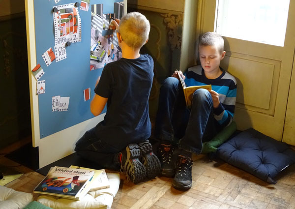 Akce se koná v rámci programů k aktuálním výstavám Václav Zapadlík/Zámky s vůní benzínu a Zlatá stuha 2015 - nejlepší české knihy pro děti.