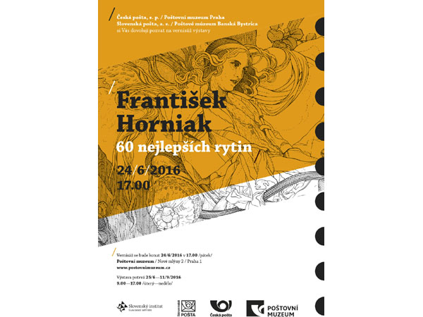 Zveme vás na vernisáž výstavy František Horniak/ 60nejlepších rytin, která se koná v pátek 24. 6. v 17 hodin v Poštovním muzeu v Praze. Výstava je věnována jednomu z nejvýraznějších zástupců slovenského ryteckého umění Františku Horniakovi, připomíná a oslavuje Mistrovo výročí narození. Vedle skvostných ocelorytin představuje liniové rozkresby autora, finální známky, aršíky, přepážkové archy a obálky prvního dne vydání (FDC). Více o výstavě najdete zde.