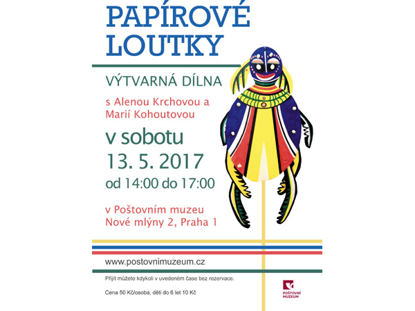 Zveme vás v sobotu 13. 5. 2017 od 14:00 do 17:00 na výtvarnou dílnu pro děti všeho věku Papírové loutky.