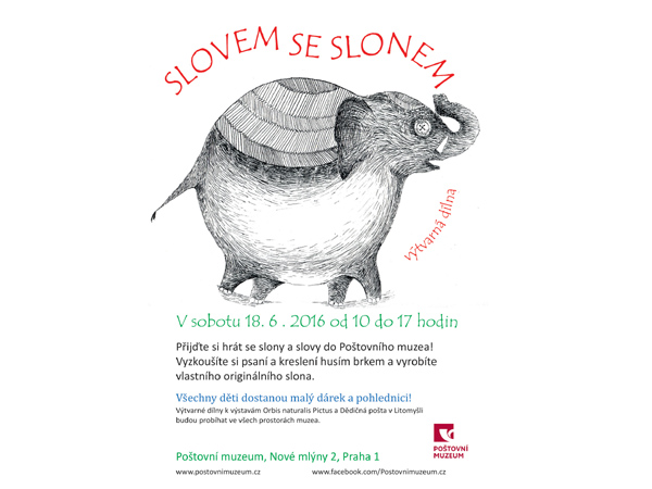 Zveme Vás na výtvarnou dílnu nejen pro děti v Poštovním muzeu v Praze 18.6. Přijďte si hrát se slony a slovy do Poštovního muzea kdykoli od 10 do 17 hodin!