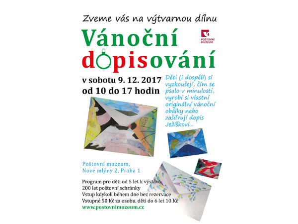 Zveme především děti na další výtvarnou dílnu k výstavě 200 let poštovní schránky v sobotu 9. 12. 2017 do Poštovního muzea v Praze.