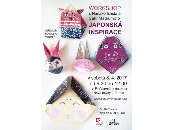 Zveme vás na workshop Japonská inspirace s Nanako Ishida a Saki Matsumoto v sobotu 8. 4. od 9:30 do 12:00 v Poštovním muzeu v Praze. Japonské ilustrátorky seznámí děti i dospělé s uměním origami a naučí je tvořit z papíru masky a vodníka.