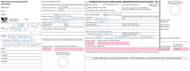 - Zahraniční pošta vyplatí poukázanou peněžní částku v národní měně.
