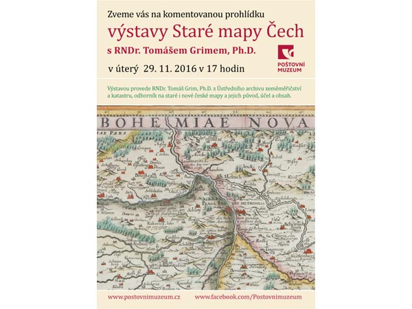 Zveme vás na komentovanou prohlídku výstavy Staré mapy Čech v úterý 29. 11. 2016 od 17 hodin v Poštovním muzeu v Praze.