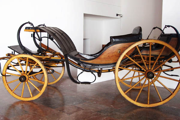 Čtyřspřežní dostavník celkem pro deset cestujících byl vyroben ve 2. pol. 19. stol. společností Cesare Sala v Miláně, jejíž počátky sahají až do období kolem roku 1800.