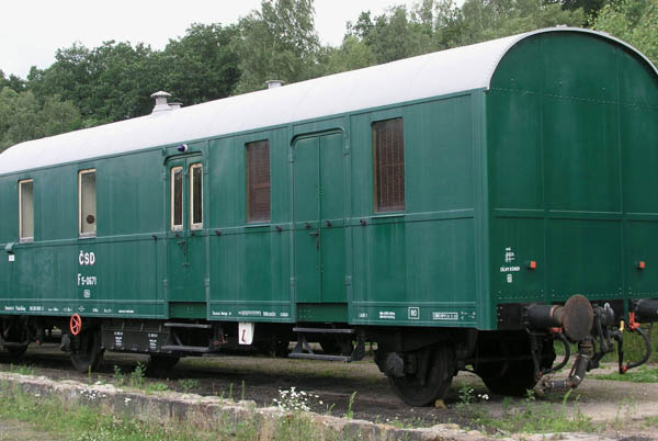 Vůz vlakové pošty se dostal do Poštovního muzea z Ředitelství poštovní přepravy Praha poté, co byl vyřazen z provozu. Naposledy byl nasazen v okrsku Jihozápadní dráhy Československých státních drah. Vůz byl vyroben v okupovaném Polsku vagónkou "Zieleniewski i Fitzner-Gamper" v Sanoku kolem roku 1944 a do ČSR se asi dostal po II. světové válce, kdy byl zařazen do vozového parku jako konfiskát. Jde o dvounápravový vůz s ocelovou karoserií, natřený zeleným nátěrem ČSD včetně všech předpisových nápisů. Interiér je rozdělen na kancelář, sklad a toaletu. V roce 1999 bylo dokončeno kompletní restaurování, včetně technické revize, v Železničních opravnách v Krnově. Vůz je plně provozuschopný a v současnosti je deponován v železničním muzeu v Lužné u Rakovníka.