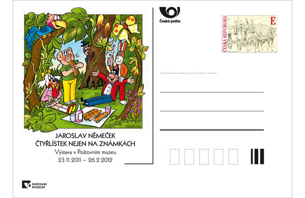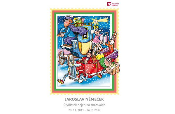 Mistrovy návrhy, postupy výroby známek a úspěšné výsledné známky jsou také součástí nové výstavy, kterou můžete pod názvem Jaroslav Němeček. Čtyřlístek nejen na známkách shlédnout od 23. 11. 2011 do 26. 2. 2012 v muzejní expozici ve Vávrově domě, ulici Nové mlýny 2 v Praze 1. Vedle příběhů hrdinů Čtyřlístku se zde výtvarník představuje i svými ilustracemi, které vytvořil pro leporela a prostorové knížky Kocour v botách a Kouzelník Žito. Vůbec poprvé je zde prezentována také Němečkova keramická tvorba. Jí se věnuje od počátku 70. let a k jeho dílům patří originálně dekorované kachle, kachlová kamna či venkovní krby. Hodně zajímavé jsou i autorovy kopie impozantní výzdoby hrobek egyptských faraonů, které připravil pro expozice německých muzeí v Miltachu a Wilddorfu, a jejichž fotografie lze také v Poštovním muzeu obdivovat.