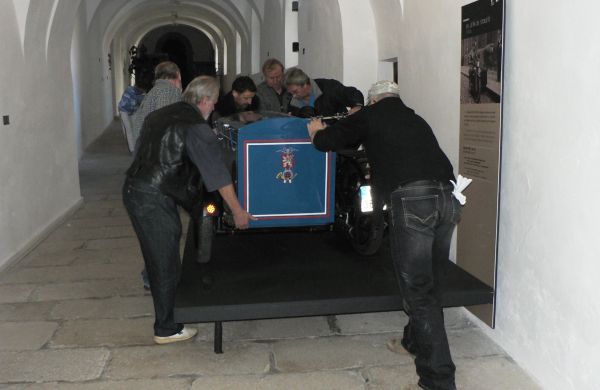 Výstava představuje motocykly a jízdní kola, používané poštou od 80. let 19. století až po současnost. Prezentovány jsou nejen dobové fotografie, ale i přímo historické stroje. Součástí výstavy, která bude v Jihočeském muzeu v Českých Budějovicích prezentována, je ukázka výtvarných návrhů poštovních známek s motocyklovou a cyklistickou tematikou od uznávaného umělce Kamila Lhotáka; ústředním exponátem této části je elegantní motocykl Douglas, na němž jezdil sám Mistr. Více o výstavě.