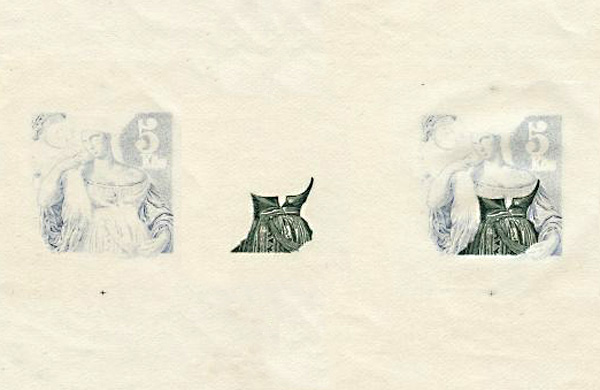 Tiskové postupy ke známce - Toaleta mladé ženy (modrá, zelená, soutisk: modrá a zelená) -